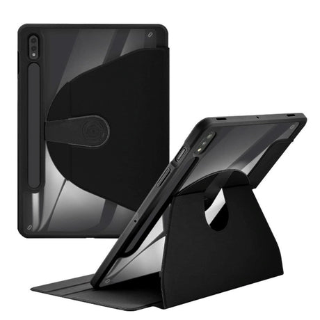 Samsung Galaxy Tab S9+ (Plus) / S9 FE+ (Plus) Hybrid Flip Case m. Pen Holder - Black / Transparent