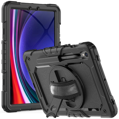 Samsung Galaxy Tab S9 Tough Case w. Protective Film, Hand Holder & Shoulder Strap - Black
