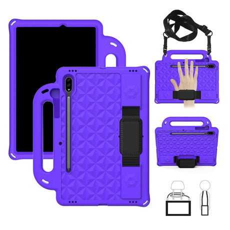 Samsung Galaxy Tab S7 Tough Case w. Pencil Holder, Strap & Shoulder Strap - Purple