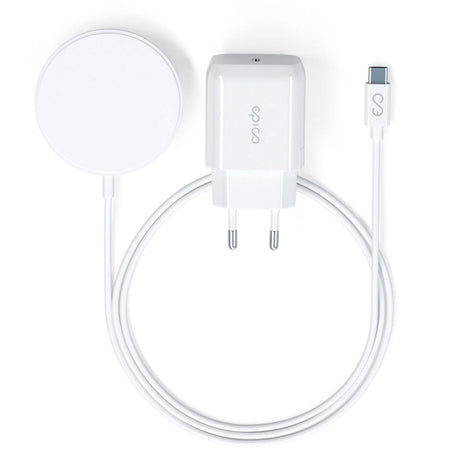 15W Magnetic Wireless Charger w. 20W PD Wall Charger - MagSafe Compatible - White