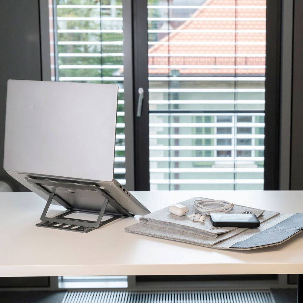 A 4Smarts Package consisting of a Laptop / MacBook Sleeve 13" and a laptop stand that fits in a pocket in the sleeve.