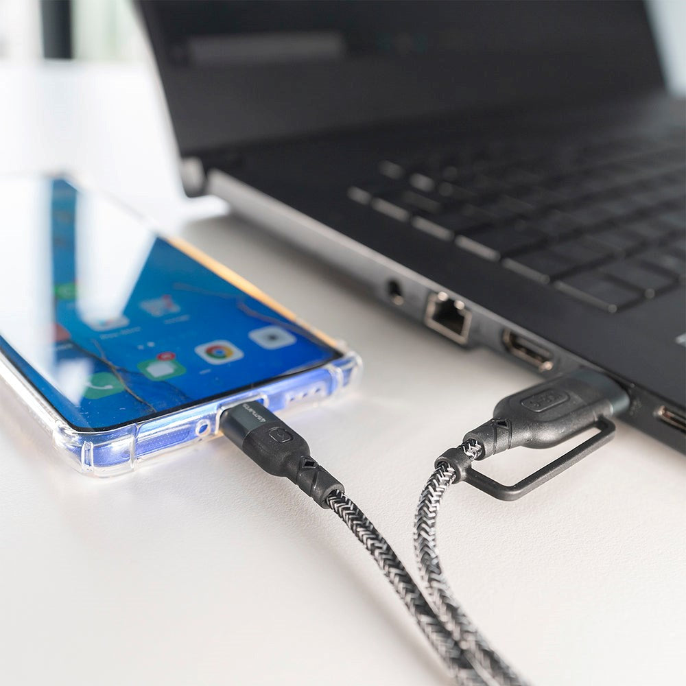 This USB-C or USB-A to USB-C Cable has a wire upholstered with fabric, this makes the cable more solid and so it prevents the cable from twisting too much into a knot.