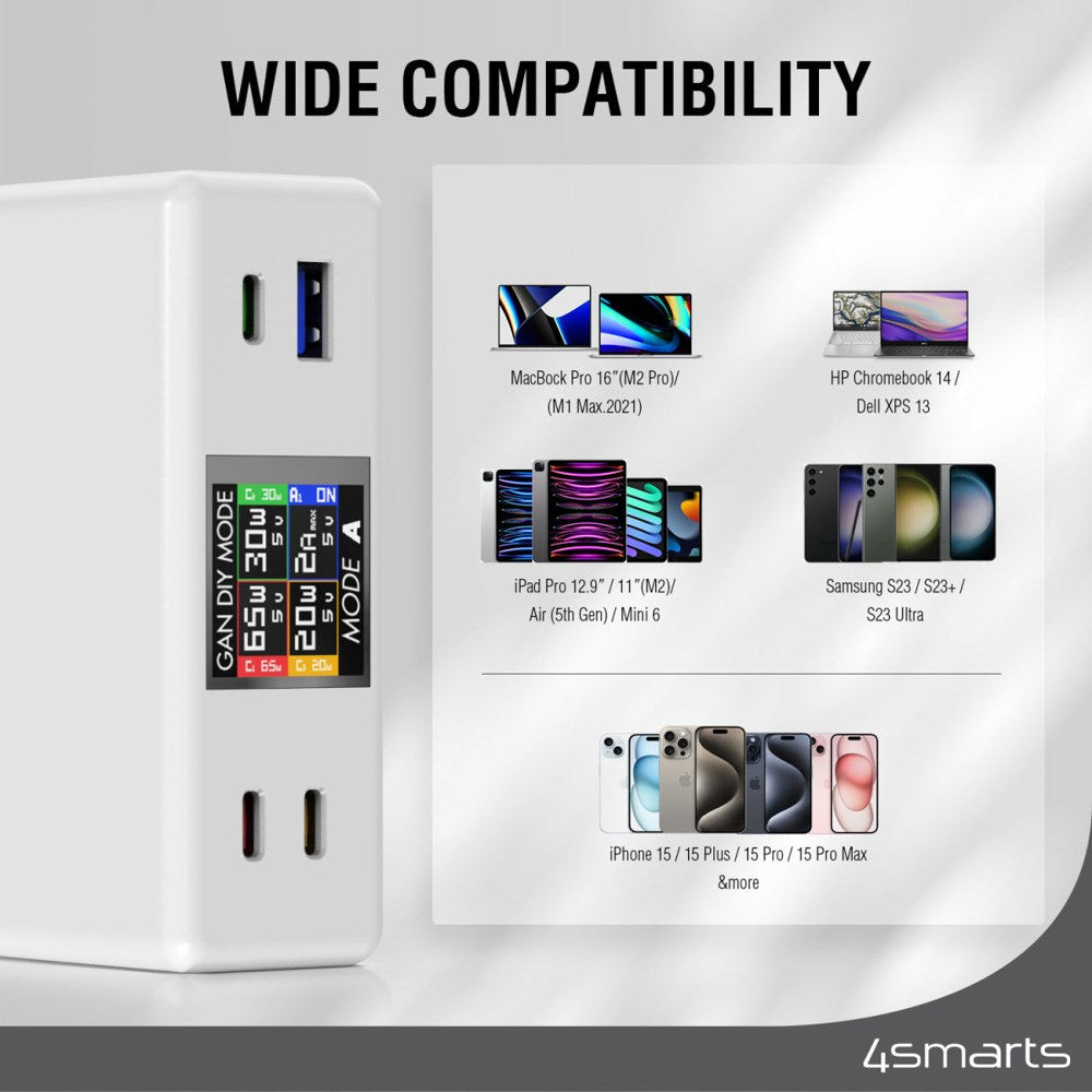 Charge multiple devices at once with an impressive 130W peak power. With 3 USB-C ports and 1 USB-A port, the charger is perfect for your laptop, tablet, smartphone, and more. The built-in software protects your devices from overcharging, ensuring safe and efficient charging.