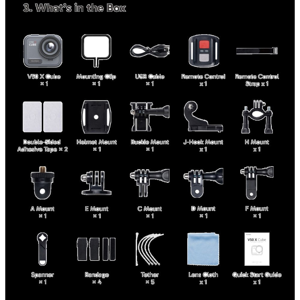 V50 X Cube Waterproof Action Camera with 4K 30FPS Ultra HD 20MP - Black