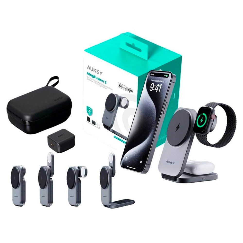 The Aukey MagFusion 3-in-1 Magnetic Foldable Wireless Charger is the perfect solution for charging your devices. With Qi2 and MagSafe certification as well as MFW approval, it reliably charges your phone, smartwatch, and AirPods simultaneously. Its ultra-thin and foldable design, only 17.55 mm thick, makes it easy to take on the go.
