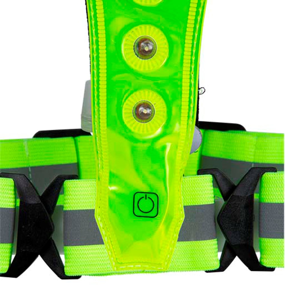 The vest combines reflective strips with integrated LED lights, providing outstanding 360° visibility.