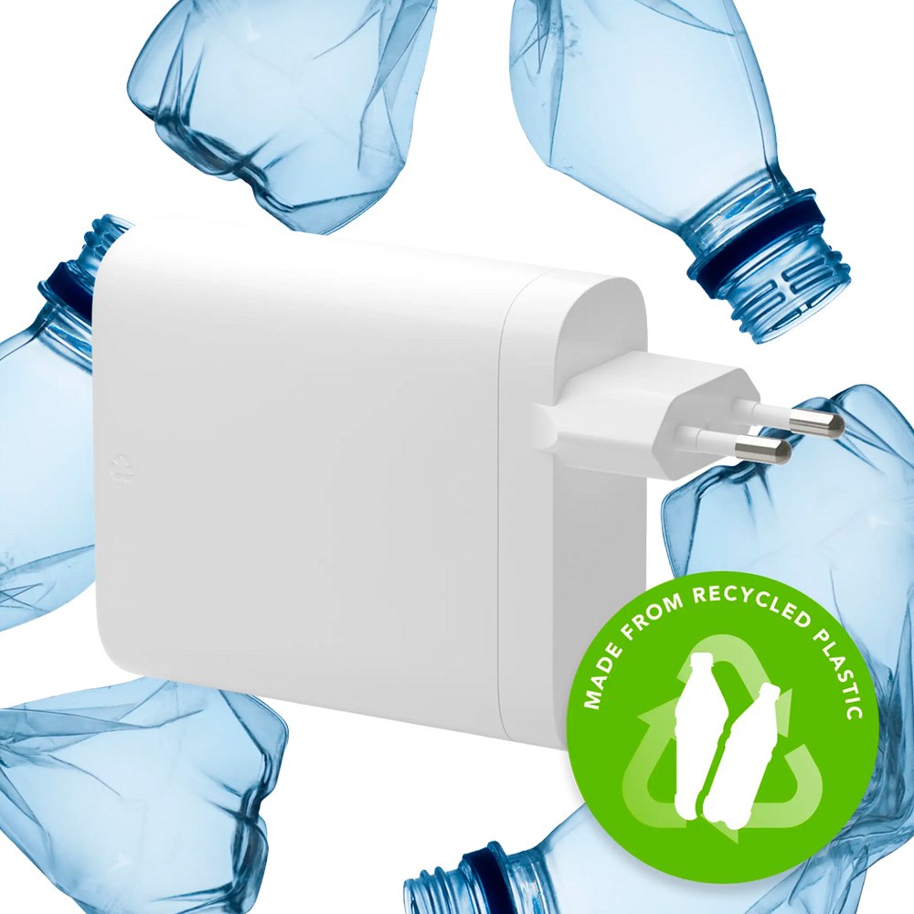 The wall charger is made from 100% GRS-certified recycled plastic and is fully recyclable. It is manufactured with GaN technology, which means it is smaller and more powerful than traditional wall chargers. The power supply is therefore more efficient, resulting in less heat waste and lower energy consumption - there’s no reason not to choose this wall charger from dbramante1928 if you care about the environment and want top-level quality and functionality.