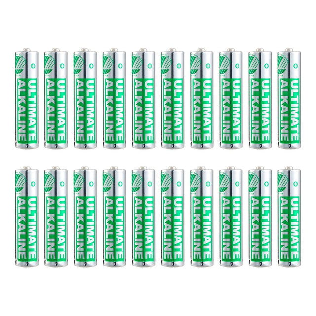 Get reliable and eco-friendly batteries with Deltaco Ultimate Alkaline AAA batteries. This 20-pack offers high quality and is ideal for devices with low to moderate power consumption, such as remote controls, wireless mice and keyboards, toys, and more. With a voltage of 1.5 V and alkaline technology (LR03), these batteries ensure stable and long-lasting power.