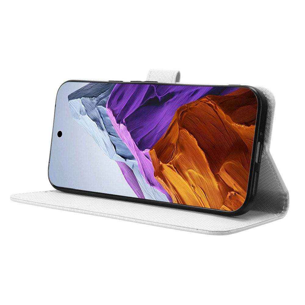 Google Pixel 9 / 9 Pro Leather Flip Case w. Strap & Texture - White