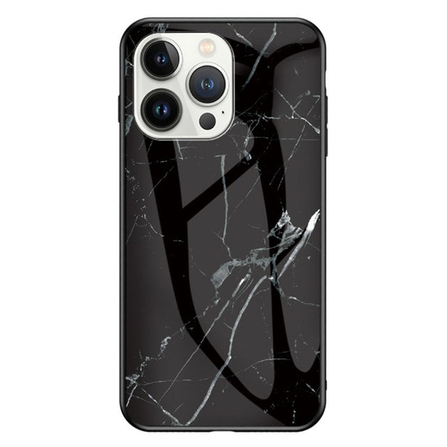 iPhone 16 Pro Max Case with Glass Back - Black Marble