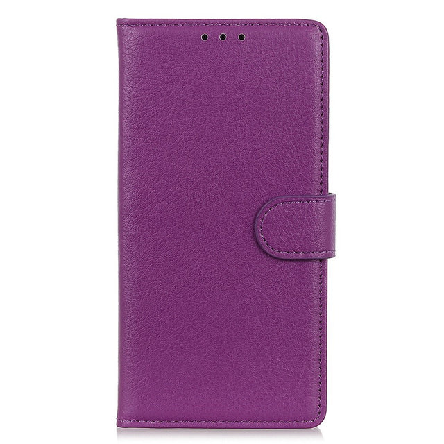 iPhone 16 Pro Max Litchi Leather Wallet Case - Purple