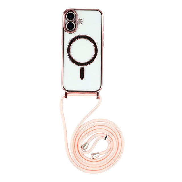 iPhone 17 Flexible Plastic Case with Adjustable Strap - MagSafe Compatible - Transparent / Pink