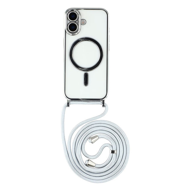 iPhone 17 Flexible Plastic Case with Adjustable Strap - MagSafe Compatible - Transparent / Silver