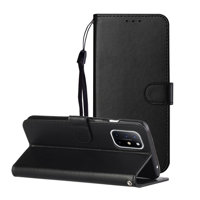 OnePlus 8T Faux Leather Case with Strap & Card Holder - Black