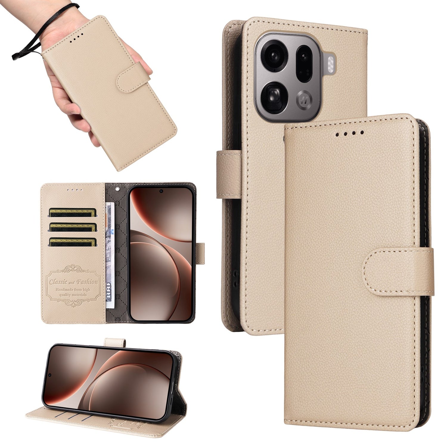 Oppo Find X9 Pro Faux Leather Flip Case with Strap - Beige
