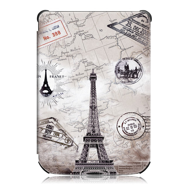 PocketBook Basic Lux 4 PU Leather Flip Case w. Sleep/ Wake-up Function - "Eiffel Tower" White / Black