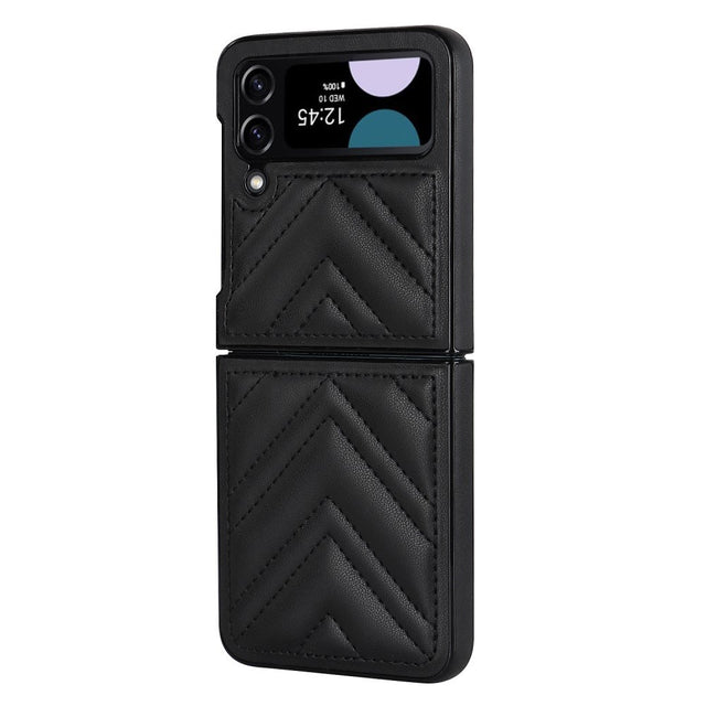 Samsung Galaxy Z Flip4 (5G) Faux Leather Case with V-Design - Black