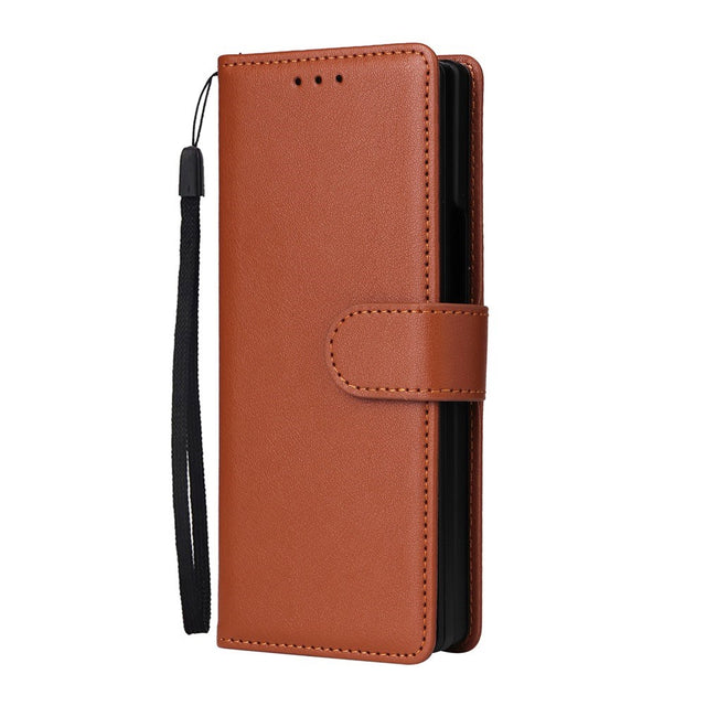 Samsung Galaxy Z Fold6 Faux Leather Flip Case with Card Holder & Strap - Brown