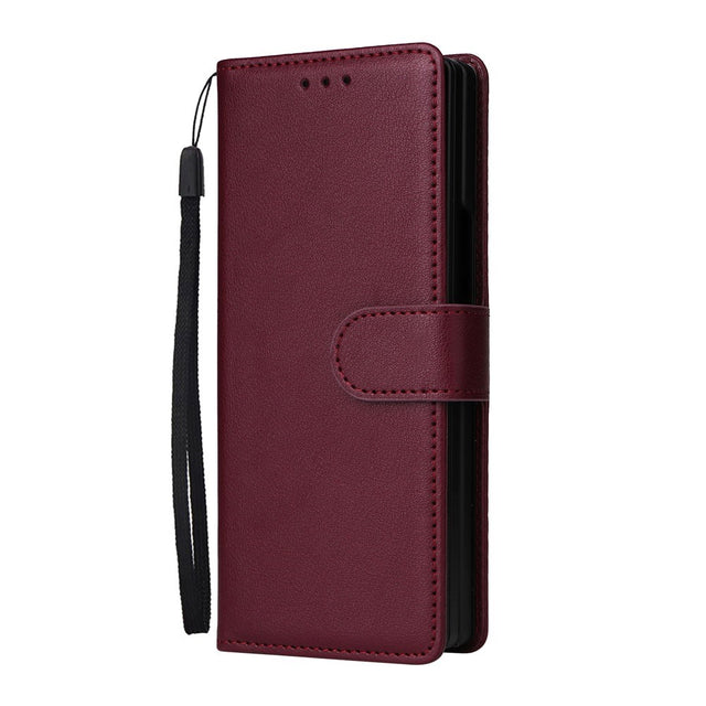 Samsung Galaxy Z Fold6 Faux Leather Flip Case with Card Holder & Strap - Dark Red