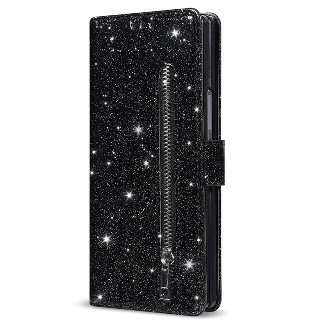 Samsung Galaxy Z Fold7 Glitter Flip Case with Wallet & Strap - Black