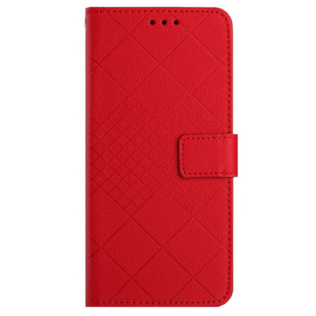 Sony Xperia 10 VI Leather Flip Case w. Wallet & Strap - Rhombus Engraving - Red