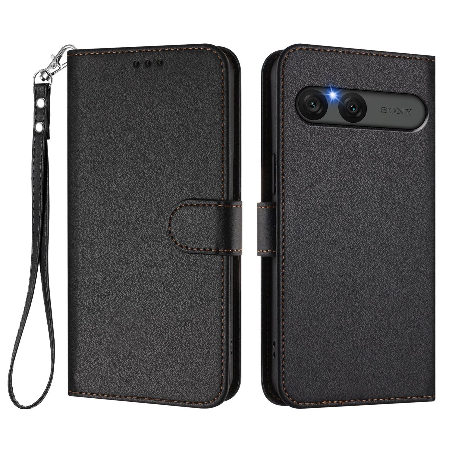 Sony Xperia 10 VII Faux Leather Flip Case with Card Holder & Strap - Black