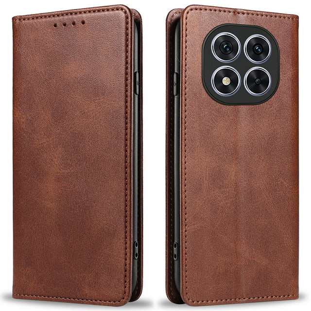 Xiaomi Redmi Note 14 Pro 5G Leatherette Case with Card Holder & Magnetic Closure - Brown