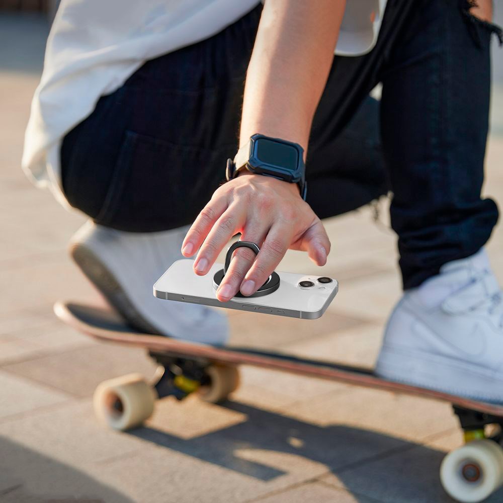 Halolock MagSafe Compatible Magnetic Finger Ring w. Kickstand - Black