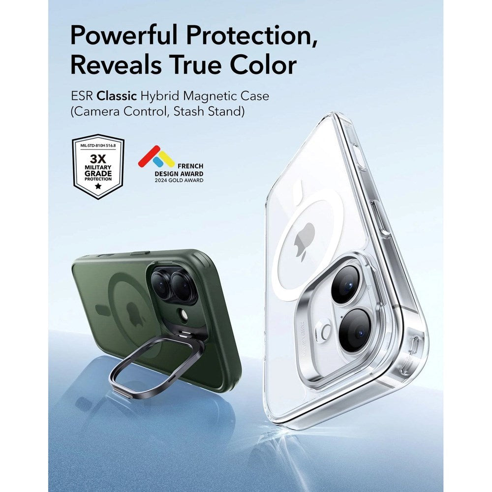 ESR iPhone 17 Classic Hybrid Stash Case with Kickstand - MagSafe Compatible - Mat Green is nabesteld en wordt verzonden zodra het weer op voorraad is.
