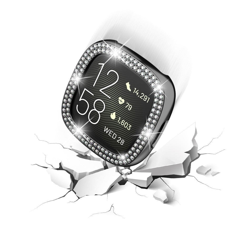 Fitbit Versa 4 / Sense 2 Hard Plastic Case - Black & Rhinestone