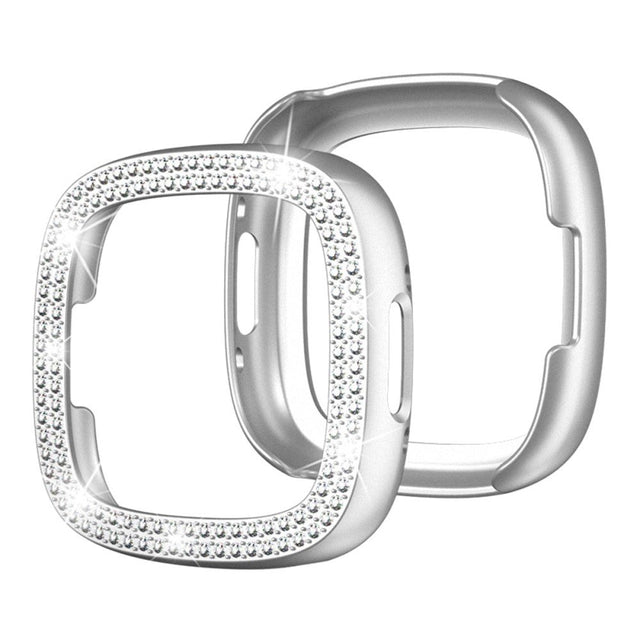 Fitbit Versa 4 / Sense 2 Hard Plastic Case - Silver & Rhinestone