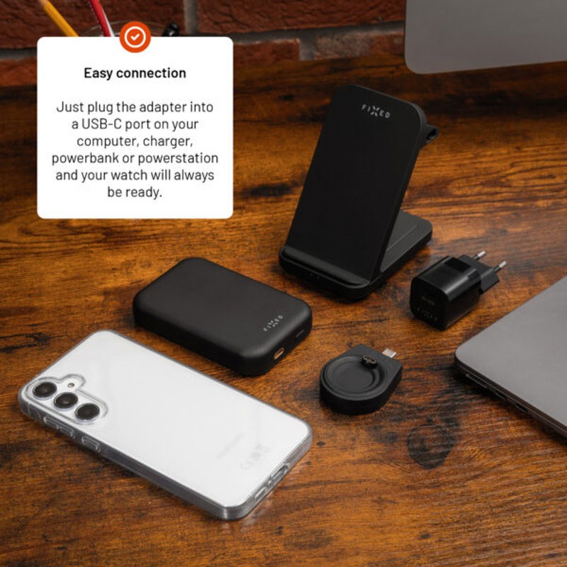This wireless charger from Fixed is designed to power your Garmin Smartwatch via a direct USB-C connection. The compact adapter makes it easy to charge your watch without extra cables by connecting it directly to devices such as a laptop, power bank, or wall charger. The charger is made of hard plastic and ensures a stable and efficient power supply.