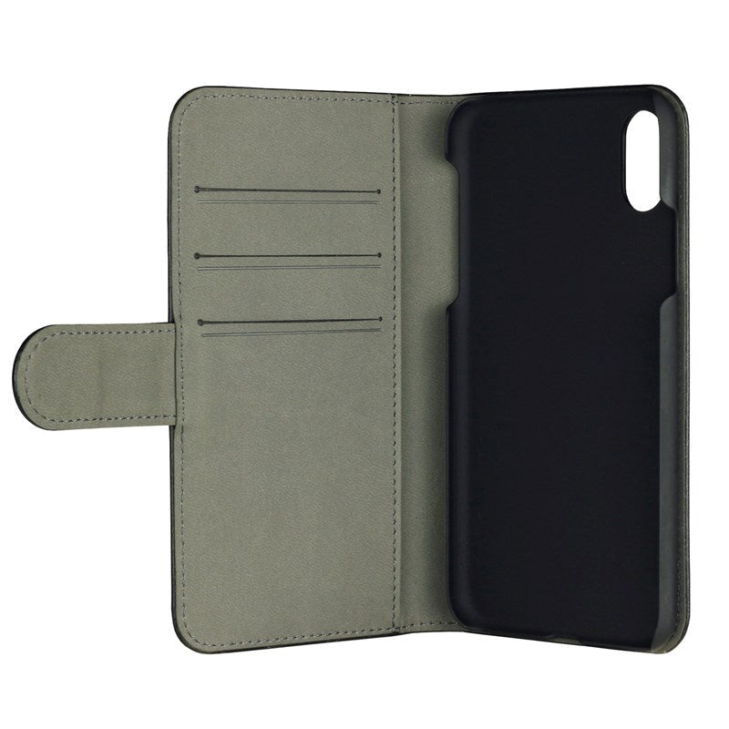 This case for iPhone X / Xs opens and closes via a flap with magnetic lock. Inside there is a matte-black plastic case for iPhone X / Xs in which the phone should be placed, while in the other part of the case is three openings for credit cards and a large pocket for banknotes. A function used if you want. The surface of the case is made of leatherette and very soft, making it comfortable to hold. The inside surface is made of a grey-black fabric material that protects the screen of your iPhone X / Xs.