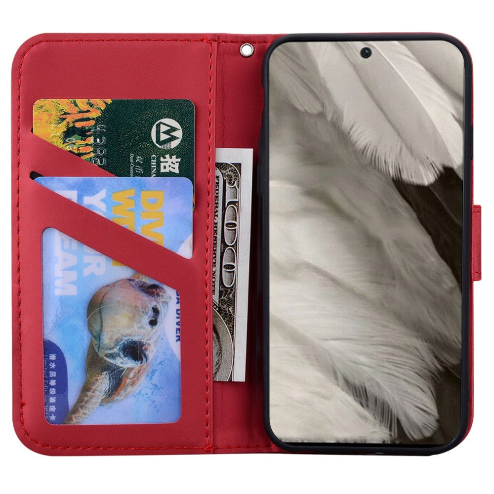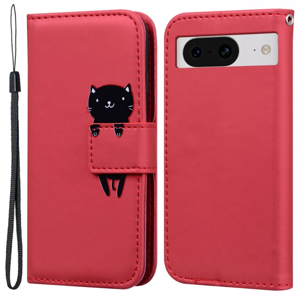 Google Pixel 8 Flip Case with Strap / Standing function / Card Holder - Red (Cat)