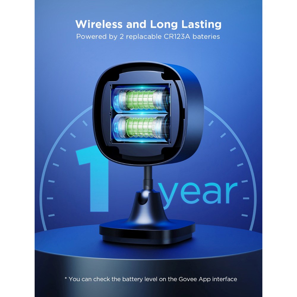 The sensor is waterproof with an IP65 rating, so you can confidently use it outdoors in all kinds of weather, year-round. It is powered by two CR123A batteries, which can be replaced when they run out.