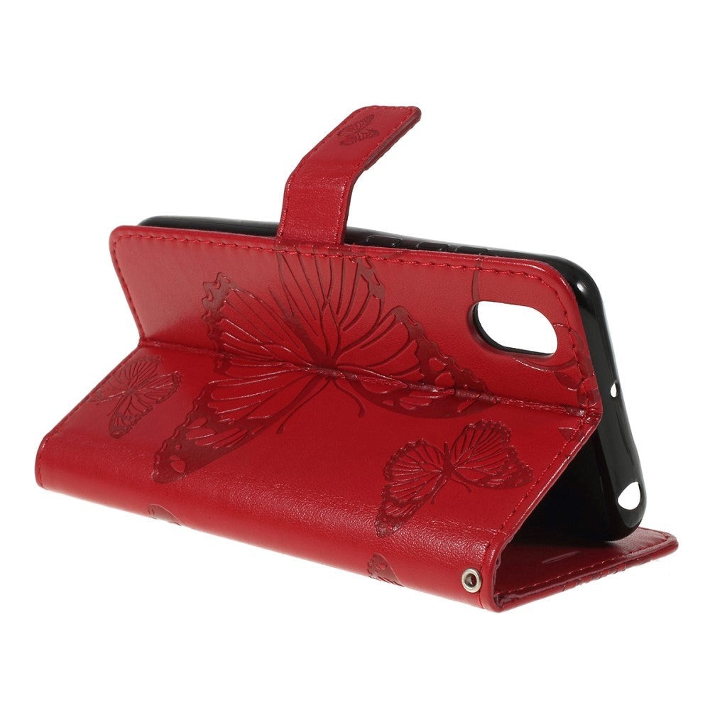 Huawei Y5 (2019) Leather Wallet Case - Red Butterfly