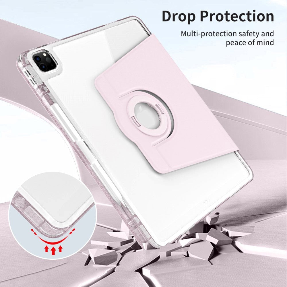 iPad Pro 12.9" (2022 / 2021 / 2020 / 2018) 2 i 1 Hybrid Flip Case with Pen Holder and Camera Lens Protector - Pink / Transparent