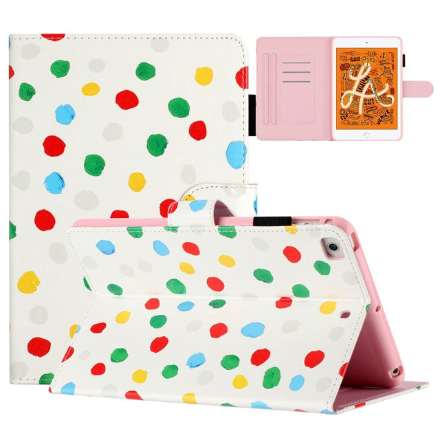 iPad Pro 9.7 (2016) / iPad Air / iPad Air 2 / iPad 9.7 (2017/2018) Leather Flip Case w. Colored Dots - White / Multi
