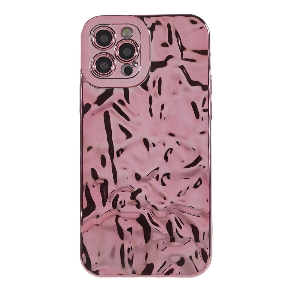 iPhone 12 Pro Shiny Flexible Plastic Back Case - Wavy Design - Rose Gold