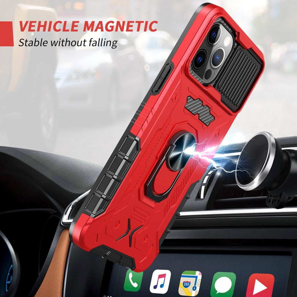 With a protection set for iPhone 13 Pro Max you are assured of optimal protection for your phone. The package includes a colored tough back case for iPhone 13 Pro Max as well as a protective glass that is made is tempered glass. The case comes with a kickstand that allows the phone to stand on its own, which is very handy for watching shows or similar on the phone. Furthermore, the case has a built-in magnetic function, through the ring on the back.