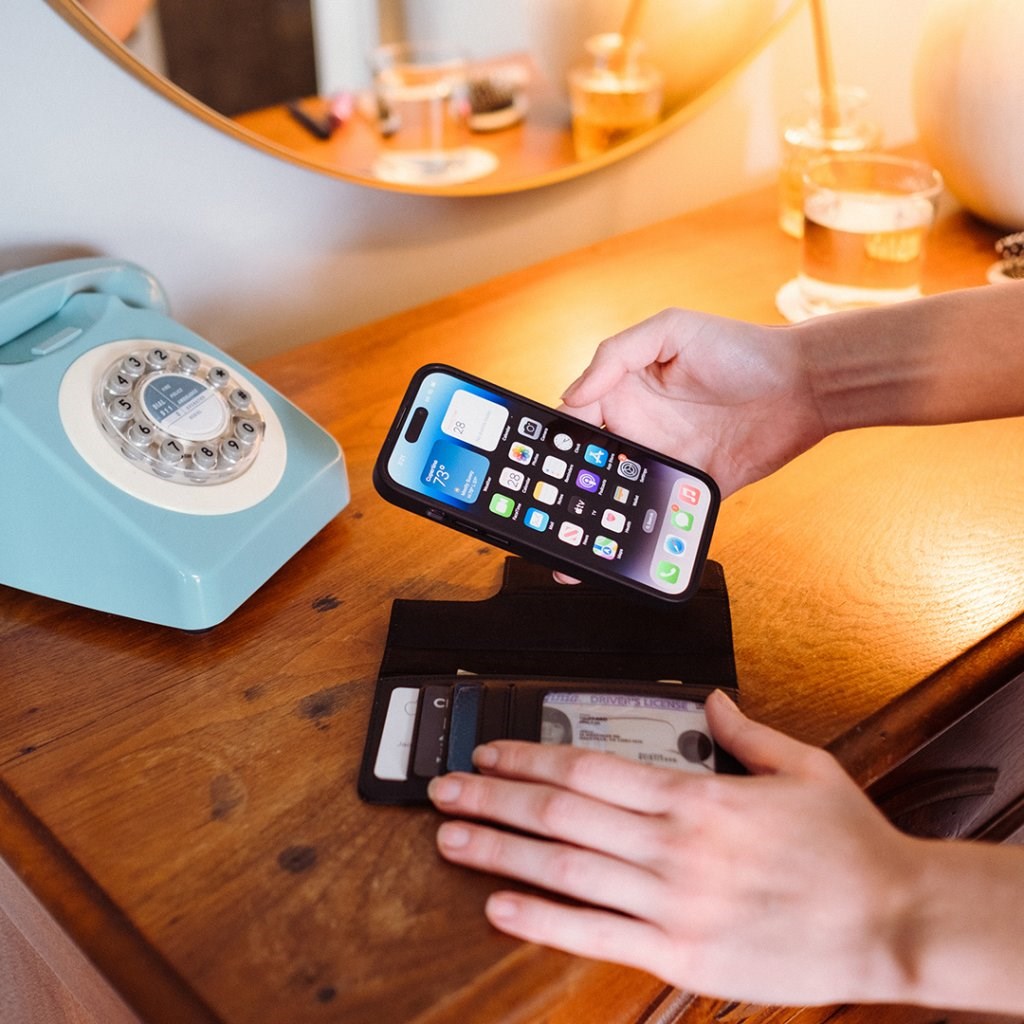 An exclusive Twelve South leather case for iPhone 14 Pro, which is made some of the best materials. The case provides good protection for the phone on both the front and back. Carry your phone safely in your pocket or bag, along with keys and such.