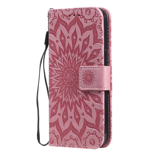 iPhone 15 case with wallet, which has an imprint of a nice mandala pattern, which gives a personal and elegant look, while also providing good protection.