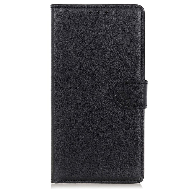 iPhone 15 Plus Litchi Leather Case w. Wallet - Black