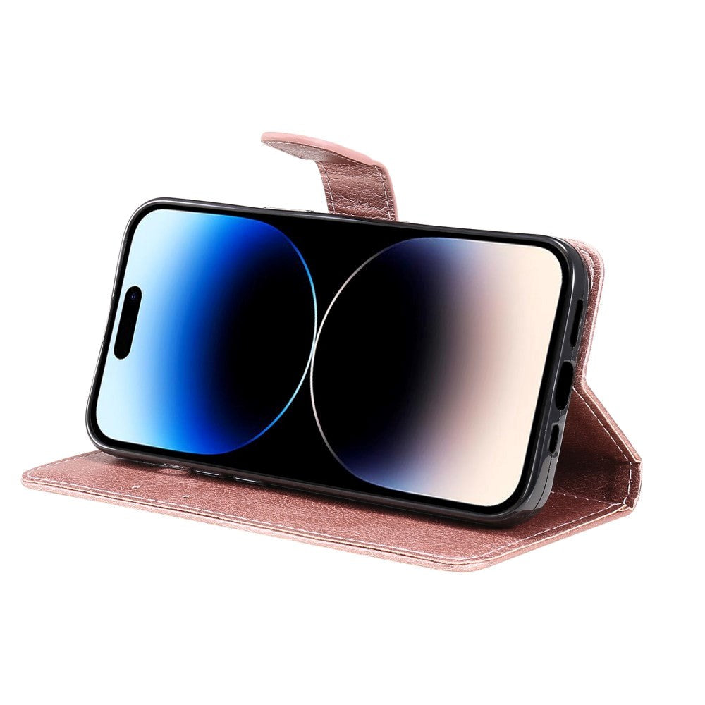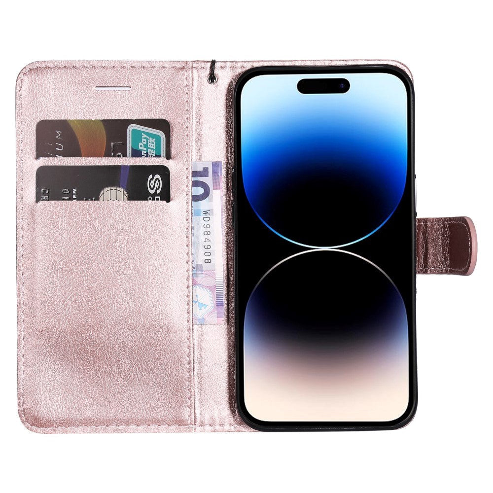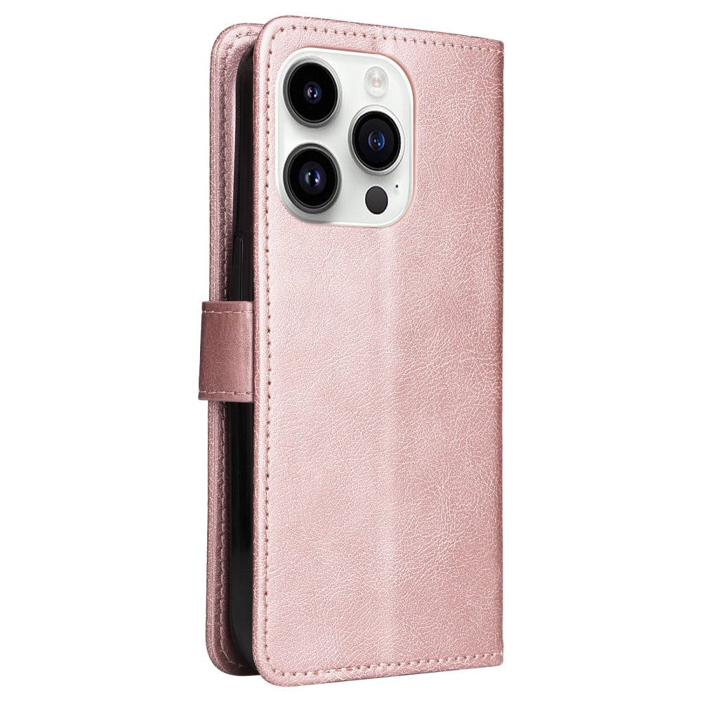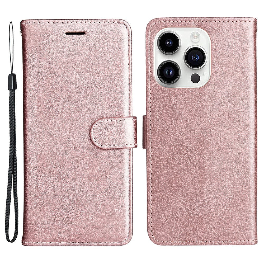 iPhone 15 Pro Leather Flip Case with Wallet and Strap and Wallet - Rose Gold