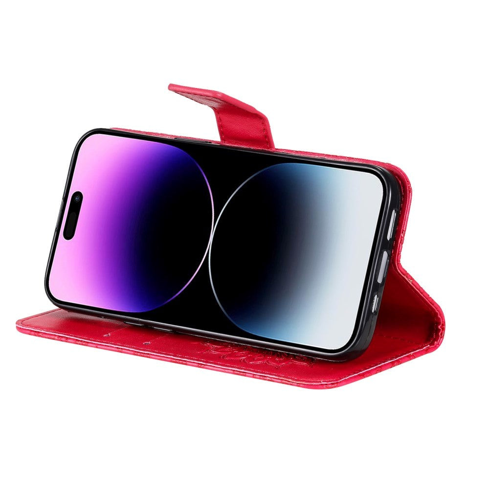 iPhone 15 Pro Max Leather Case with Wallet and Strap - Mandala Flower - Red