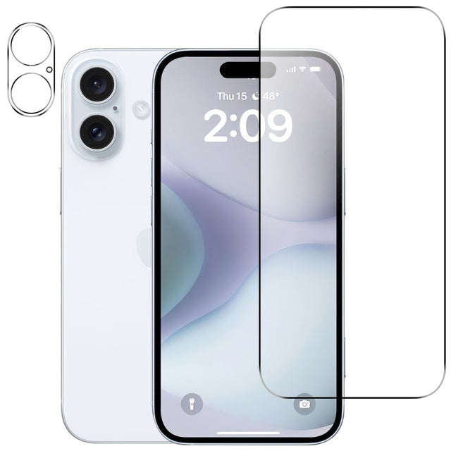 iPhone 16 2-in-1 Bundle Camera Lens Protector and Tempered Glass Screen Protector - Transparent