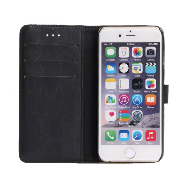 Practical, stylish black case with wallet for iPhone SE (2022 / 2020), iPhone 8, iPhone 7 and iPhone 6/6s that looks great and provides excellent protection for your phone. This iPhone case opens and closes via a small flap with magnetic closure.