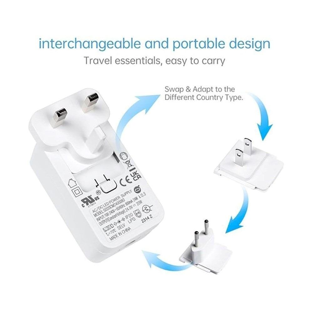 With Light Solutions' Power Supply for Philips Hue LightStrip V4, you not only get a reliable and efficient power source but also a variety of plugs that allow you to connect your light strip no matter where you are. This power supply comes with multiple plugs, so you can use it in different countries and regions without any hassle.