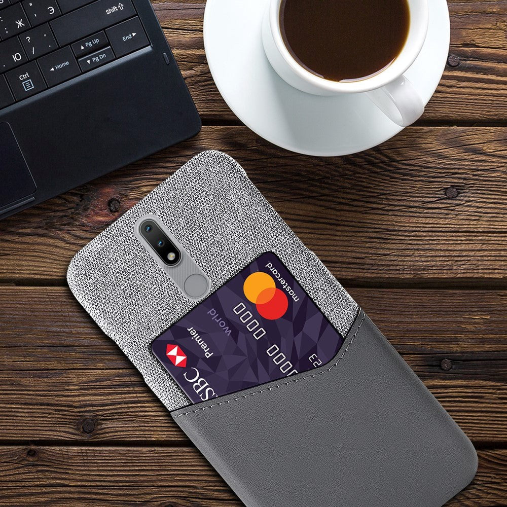 Nokia 2.4 Fabric Case w. Leather Card Holder - Grey