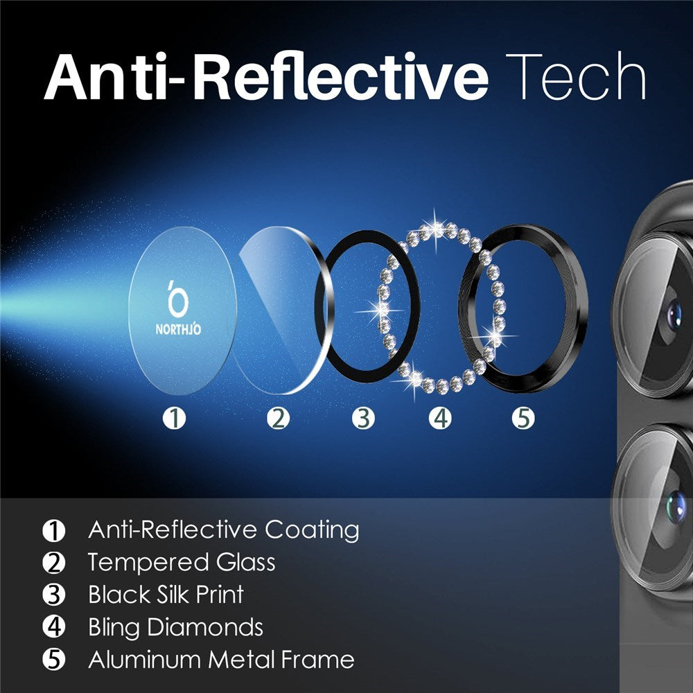 NORTHJO iPhone 16 / 16 Plus Camera Lens Protector - Decorative Stones - Black is nabesteld en wordt verzonden zodra het weer op voorraad is.